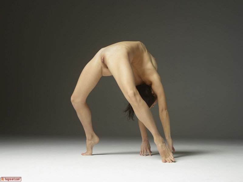 Молодой гимнастке стало скучно в спорте и девушка подалась в фото эротику. Красотка разделась перед камерой и голая стала вытворять необычайные вещи. Гимнастка на шпагате показывала свою бритую письку, с разных ракурсов продемонстрировала грудь и упругую попку. Она изображала невероятные фигуры и всё это в голом виде, благодаря чему мы можем рассмотреть всё её тело подробно и таки узнать, что же там у гимнасток под их трусиками когда они садятся на шпагат...