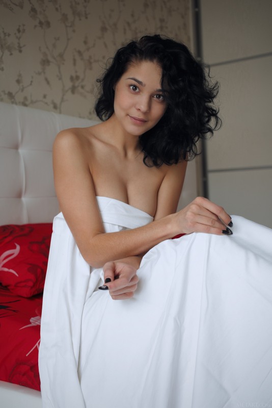 Кокетливо прикрываясь от нас одеялом, голая смуглянка с натуральными упругими сиськами эротично позирует на кровати. Чувственно извиваясь всем телом в самых откровенных позах, жгучая брюнетка охотно раскрывает между ног свою бритую пизду и заманивает любого желающего присунуть ей своей крепкий влажный член.