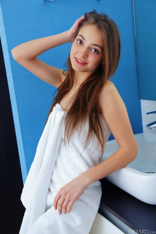 Легко скинув с себя прикрывающее тело полотенце и выставив на всеобщее обозрение свое стройное молодое тело, красивая девушка с аккуратными титечками и маленькой упругой попой возбуждающе раздвигает перед камерой ножки и тщательно моет бритую письку в душе.