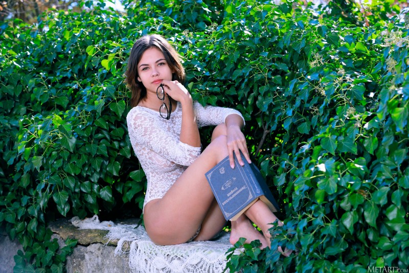 Игриво позируя перед камерой и постепенно стягивая с себя кружевное обтягивающее боди, аппетитная куколка с округлыми формами бесстыже разделась в кустах. Прячась за ними от случайных прохожих, сексуальная детка показывает на камеру сочные грудки и мягкую попку и на показ жамкает их своими шаловливыми ручонками.