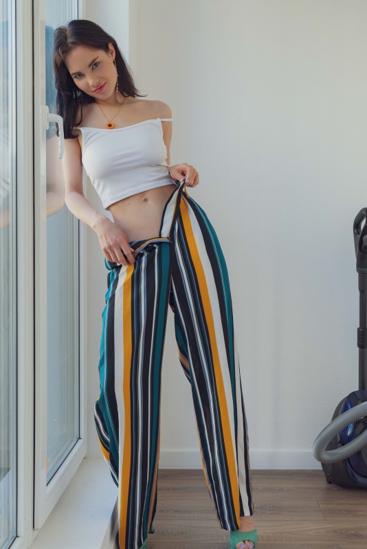 Устроив нам настоящий стриптиз, горячая штучка медленно стянула с себя мешающуюся сейчас одежду и оголила упругую нежную попку перед камерой, бесстыже выпячивая ее крупным планом. Возбуждающе лаская руками свое чувствительное тело, сексуальная детка с натуральными сиськами не стесняется показать себя во всей красе и охотно демонстрирует любому желающему рабочую бритую пизду.
