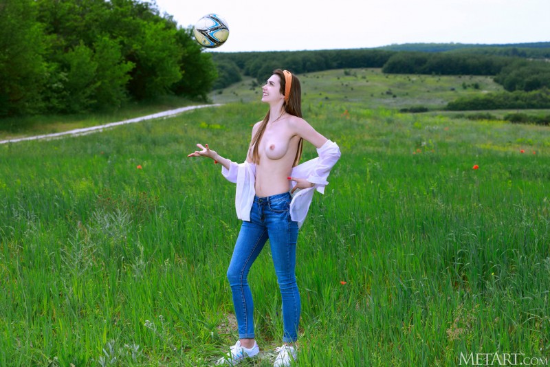 Медленно стянув с себя всю одежду и играясь с мячом, молодая спортсменка с красивым подтянутым телом развратно позирует голышом на природе. Бесстыже выпячивая на камеру то свои упругие титьки, то сочную жопку, гибкая девушка с самых невероятных ракурсов раскрывает перед нами свою бритую пиздёнку с узкой манящей дырочкой между ног.