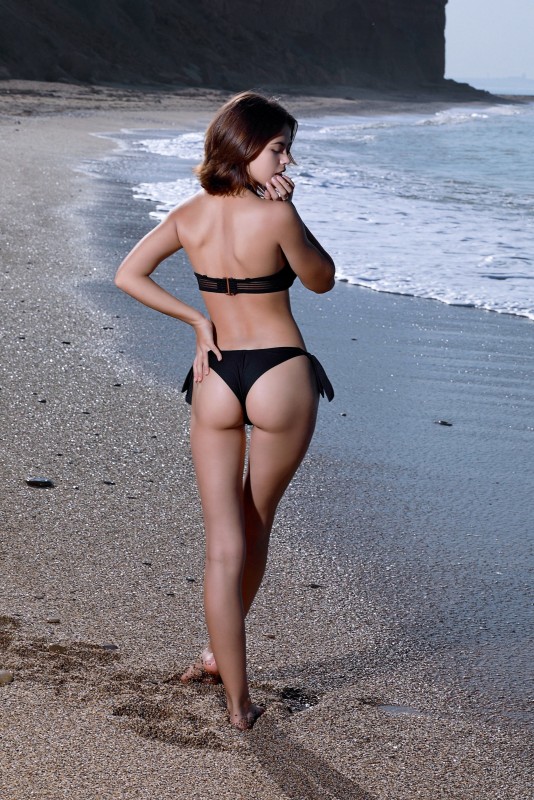 Чувствуя себя немного неуверенно, молодая начинающая нудистка в открытом купальнике эротично оголила на пляже свои сочные буфера и крепкую аппетитную задницу. Энергично позируя голышом на мокром песке, сексуальная детка с натуральными формами с удовольствием ловит на себе возбужденные взгляды и бесстыже раскрывает перед нами даже свою бритую промежность с аккуратной нежной писькой.