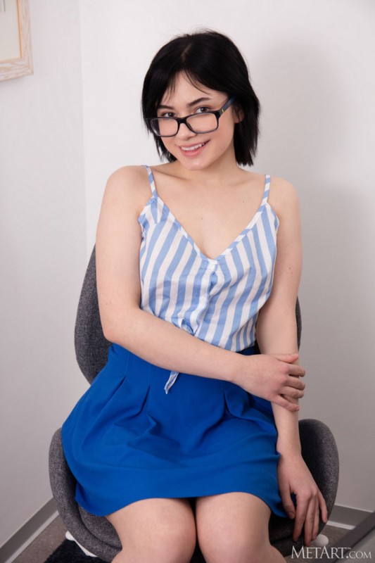 Устроив стриптиз прямо на своем рабочем месте, милая брюнетка постепенно сняла с себя всю одежду и выставила на показ молодое нежное тело с красивой грудью и попой. Затем развалившись в кресле с широко раздвинутыми ножками, бесстыжая девица похотливо тычется на камеру свое раскрытой промежность с манящей розовой писькой посередине.