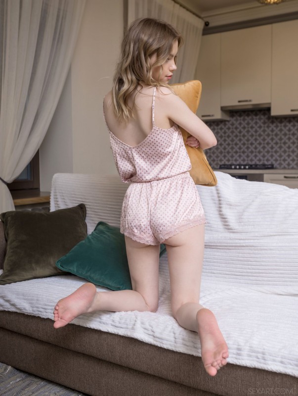 Кокетливо зажимаясь перед камерой, миниатюрная детка медленно сняла с себя миленькую пижаму и бесстыже раздвинула стройные ноги. Развратно кувыркаясь голышом на диване, молодая чертовка с нежными титечками с разных ракурсов раскрывает бритую промежность и умело работает длинными пальчиками глубоко во влажной дырочке.