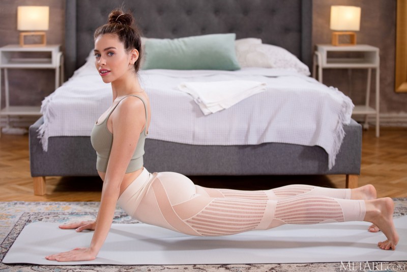 Увлеченно занимаясь дома йогой и постепенно стягивая с себя всю свою обтягивающую тело одежду, гибкая телка с упругой грудью и попкой профессионально принимает перед работающей камерой самые откровенные невероятные позы и со всей ракурсов показала между ног свою бритую письку с возбуждающей прической на лобке.