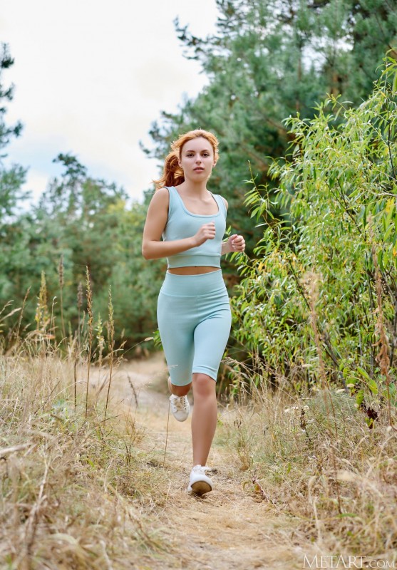 Закончив пробежку и небольшую разминку, спортивная рыжуха в обтягивающей одежде кокетливо оголила перед камерой натуральные сиськи и попу в лесу и, уверенно демонстрируя нам свое сексуальное подтянутое тело, без стеснения раскрывает в промежности гладкую писечку с нежными половыми губами.