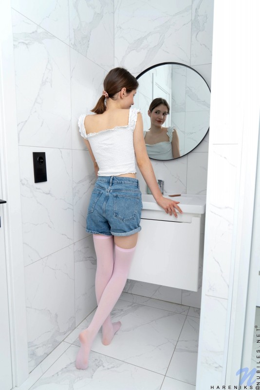 Без стеснения сняв с себя всю одежду с милыми розовыми трусиками и с удовольствием встав под горячие струи воды, мокрая потаскуха с плоскими титьками развратно тычется в камеру своей пухлой бритой пиздёнкой и на показ играется с ручным дилдо прямо в душе.