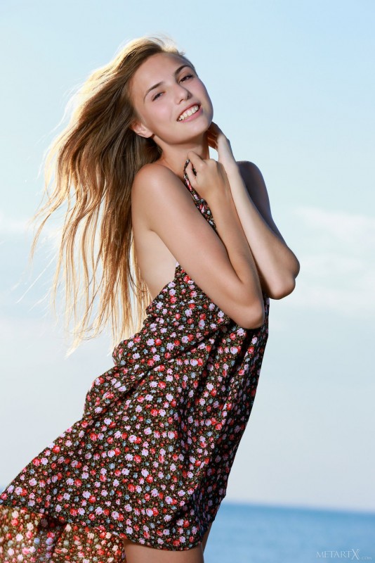 Легко и непринуждённо сняв с себя платье и хвастаясь перед нами своим обнаженным телом, длинноногая худышка с упругими титечками и маленькой попой вовсю развлекается голышом на пляже и, страстно извиваясь на горячих камнях в разных позах, раскрывает во всей красе свою бритую киску с розовыми сладкими губками.