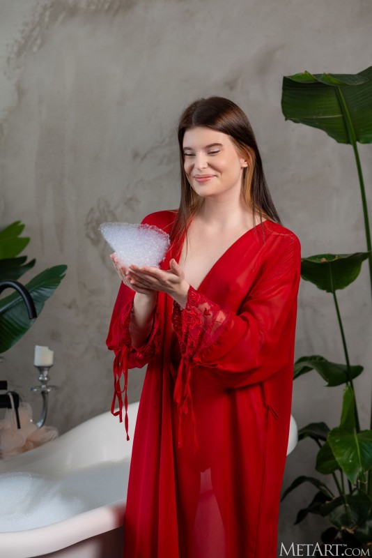 Сняв с себя халат и медленно опустившись в горячую воду с пеной, голая дамочка с плоской грудью с маленькими сосочками нежится в ванне и расслабленно поглаживает свое стройное тело в разных местах. Игриво выпятив из воды свою мягкую попочку, разгоряченная телочка раскрывает перед камерой бритую промежность и показывает всем свою аккуратную писечку.