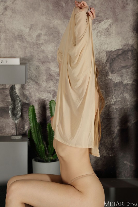 Быстро и без промедления сняв с себя платье вместе с трусиками и удобно устроившись в мягком кресле, голая милашка с натуральной упругой грудью похотливо выпячивает в камеру свою аппетитную попку и, соблазнительно прогибаясь всем телом в возбуждающих позах, раскрывает между нежными бёдрами гладкую розовую писю.