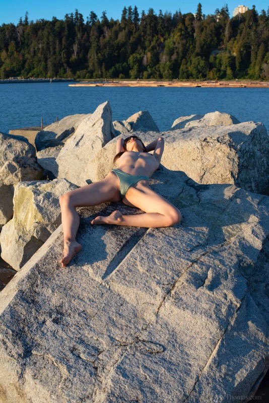 Медленно раздевшись до гола под лучами заходящего солнца, стройная развратная женщина с маленькими титьками позирует на пляже. Без стеснения раскрывая свою бритую промежность, возбужденная телка похотливо выпячивает к нам свою темную пизду и со всей страстью ласкает ее умелыми быстрыми пальцами.