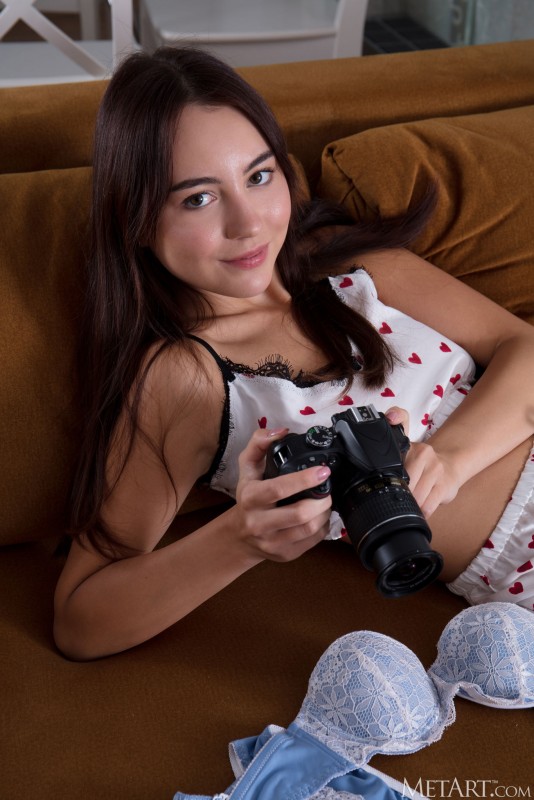 Развалившись перед камерой на диване и развратно извиваясь на нем в разных неприличных позах, игривая милашка в шелковой пижаме с удовольствием сняла ее со своего сексуального молодого тела и показала всем упругие красивые сиськи. Потом голая цыпочка с шикарными формами принялась нежно поглаживать себя в самых чувствительных местах и с широко раскрытой рогаткой хвастается своей бритой сладкой писечкой.