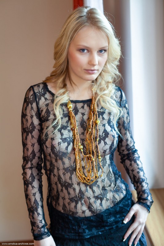 Медленно избавившись от всей одежды прямо перед снимающей ее камерой, развратная стройная блондинка с интимной стрижкой на лобке энергично кувыркается в разных позах на диване и приглашающе раздвигает свои длинные ноги, раскрывая во всей красе бритую губастую пиздёнку.