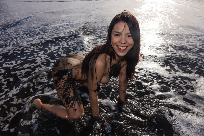 Эротика » Голые девушки » Сексуальная телка измазалась в грязи на пляже
