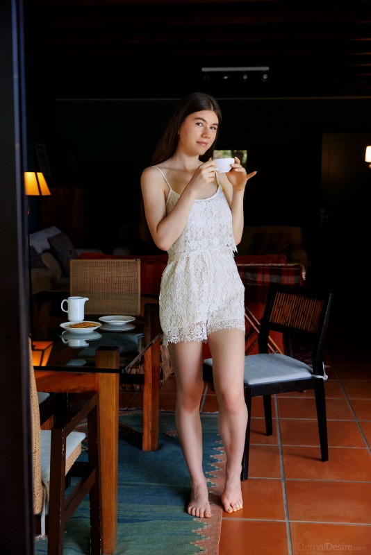 Кокетливо строя нам глазки через камеру и медленно стягивая с себя короткое платье, голая милашка с красивым стройным телом во всех подробностях похвасталась нам своими большими буферами и, периодически меняя разные откровенные позы, возбуждающе засветила между бёдрами гладкую розовую писю.