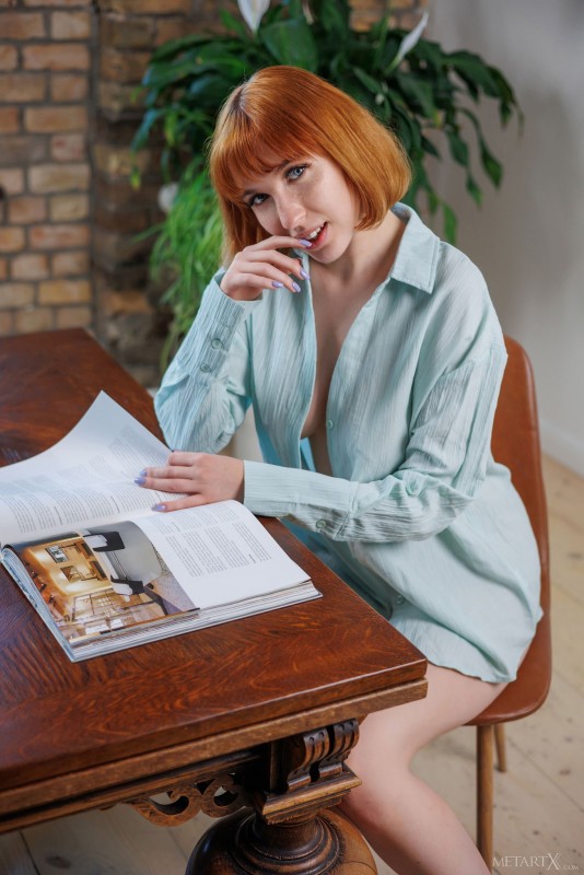 Медленно сняв с себя рубашку и похваставшись перед камерой своими красивыми упругими сиськами, сексуальная рыжуха устраивается прямо на столе с широко раздвинутыми ногами и на показ трахает себя шаловливыми пальцами, крупным планом демонстрируя нам свою рабочую розовую киску.