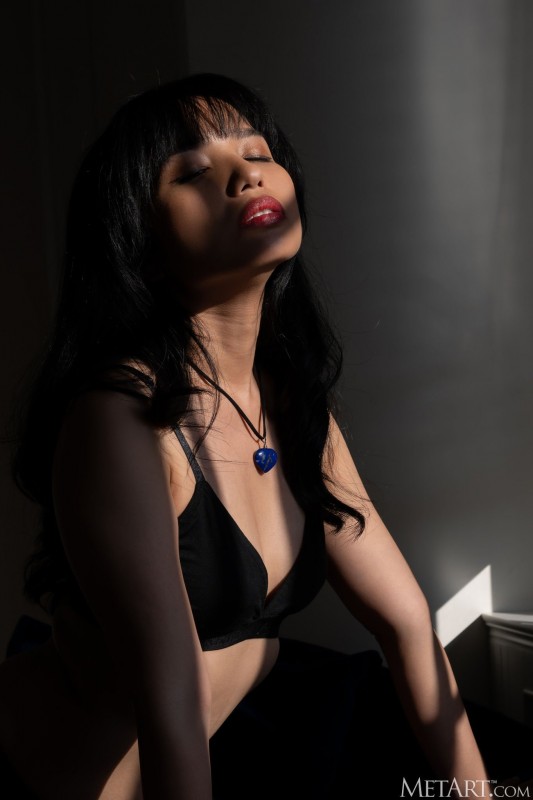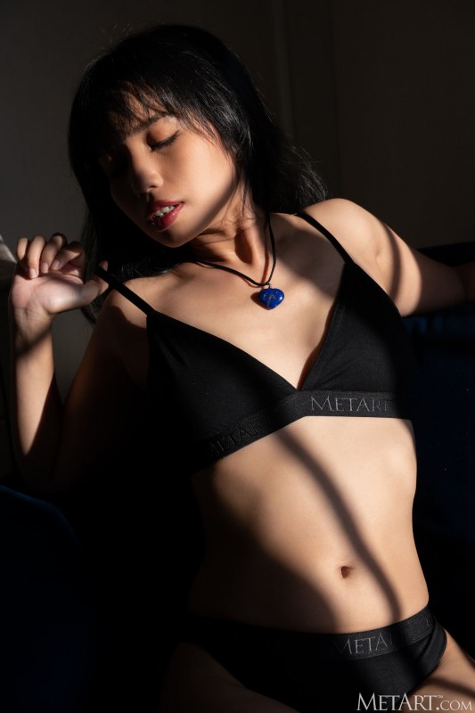 Эротично стянув с себя нижнее белье и красиво позируя обнаженной перед камерой, молодая симпатичная азиатка с маленькими титечками игриво светит своими коричневыми сосками и, чувственно прогибаясь всем телом у открытого окна, мельком показывает нам бритую нежную писю между раздвинутыми бёдрами.
