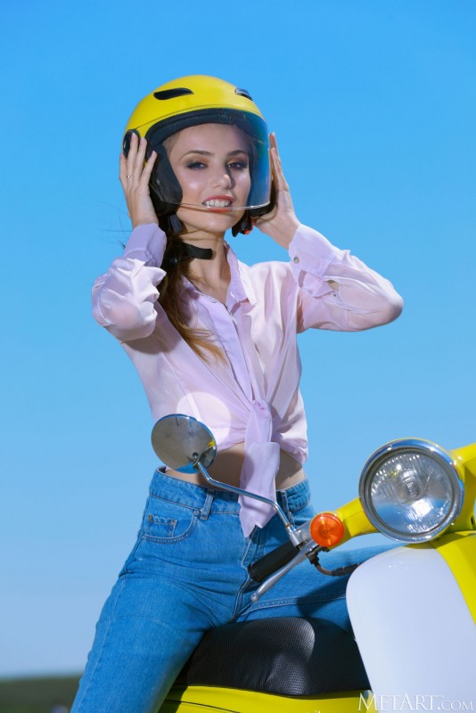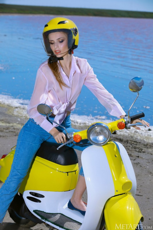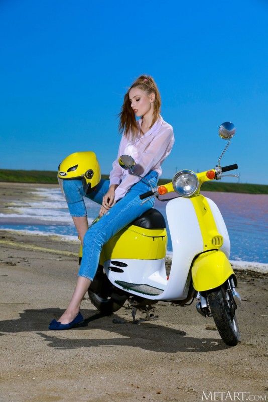 Приехав на место фотосъемки на мопеде и сразу же начав снимать с себя всю одежду, молодая извращенка с миниатюрными упругими титечками разделась до гола на пляже и, страстно прогибаясь перед камерой в самых неприличных позах, успела похвастаться нам своей крепкой задницей и раскрытой между ног сладкой киской.