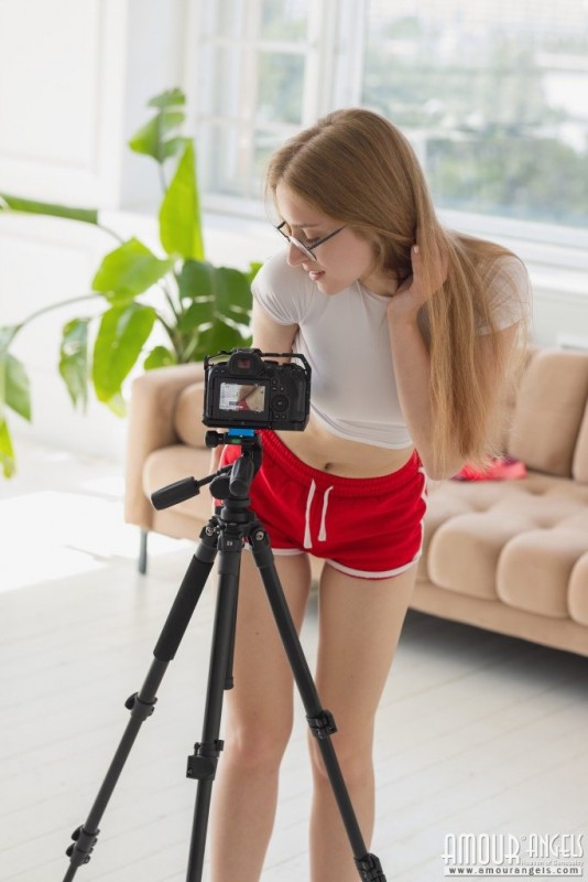 Хорошенько потренировавшись дома и с удовольствием сняв с себя перед камерой майку с шортами, очкастая простушка с маленькими титьками оголила между ног свою бритую розовую писю и сразу же принялась позировать голышом на диване, демонстрируя всем свои самые интимные места.