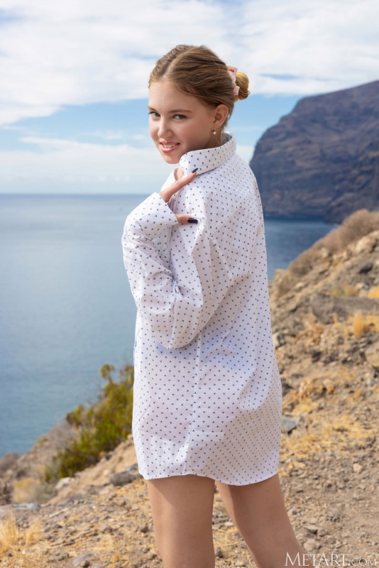 Захотев попробовать что-нибудь новое и возбуждающее, молодая начинающая нудистка неторопливо снимает с себя нижнее белье на пляже и, демонстрируя всем желающим свое сексуальное тело с натуральными сиськами и задницей, лежит на земле с раскрытой на показ голой маленькой писькой.