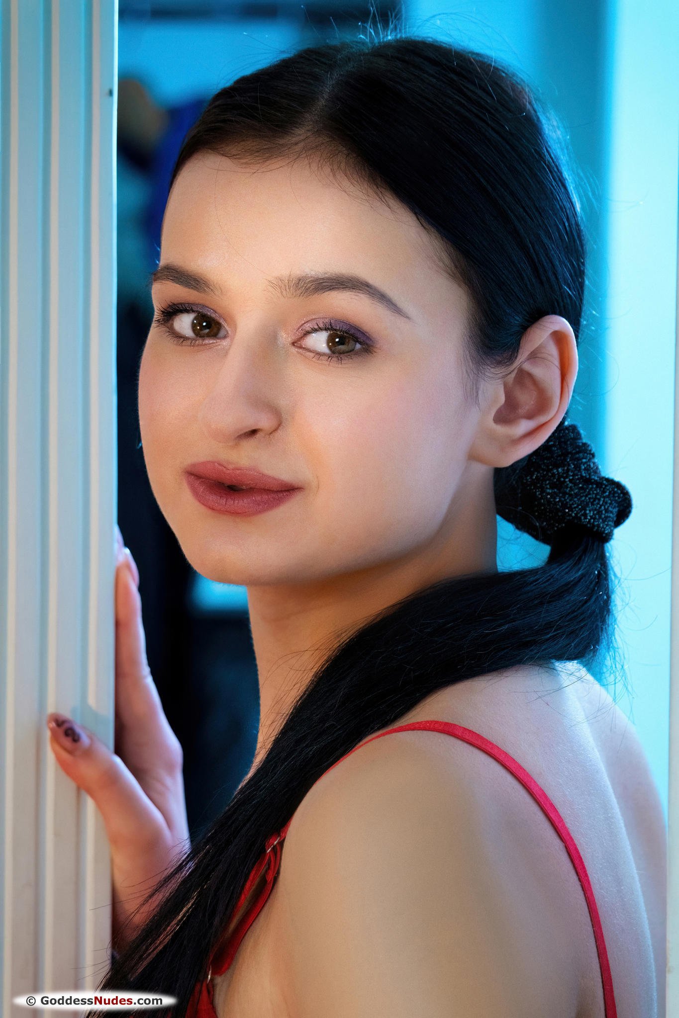 Медленно сняв с себя в спальне красный лифчик с трусам и игриво повиляв перед камерой аппетитной попочкой, привлекательная развратная бабёнка с упругими сиськами кувыркается голышом на кровати и с раскрытыми на показ бедрами демонстрирует всем желающим свою аккуратную маленькую пиздёнку.