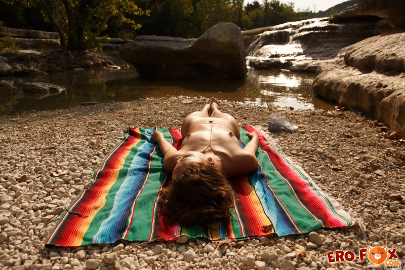 Красивая подруга, оказавшись возле речки, решилась немного освежится. Оголившись, она забралась в воду и принялась эротично позировать, засвечивая стройное тело. В будущем голенькая красотка улеглась на подстилке и засветила маленькие сиськи с гладко выбритой писькой.