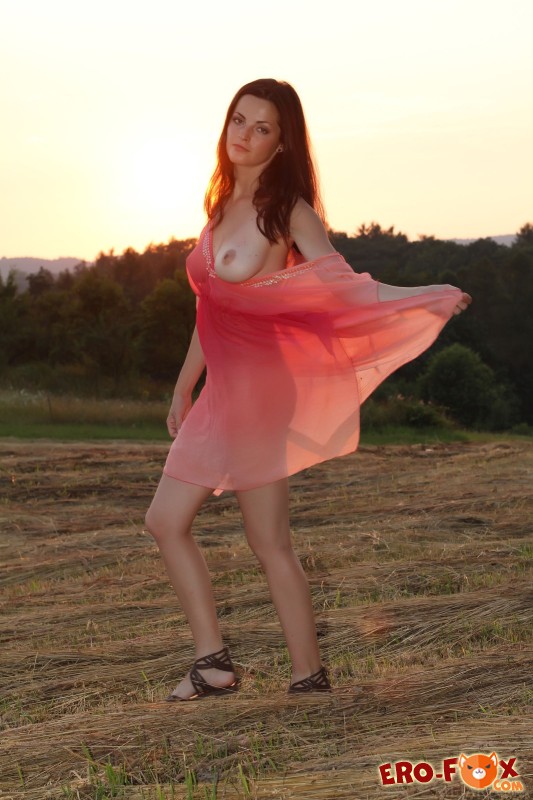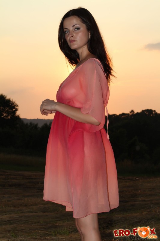 Привлекательная развратная девушка в платье, начала страстно позировать на природе, параллельно медленно раздеваясь. Как только голая красотка улеглась на землю, моментально принялась эротично двигаться, стараясь засвечивать упругие сиськи, а в позе раком демонстрировать голенькую письку с подтянутой попкой.