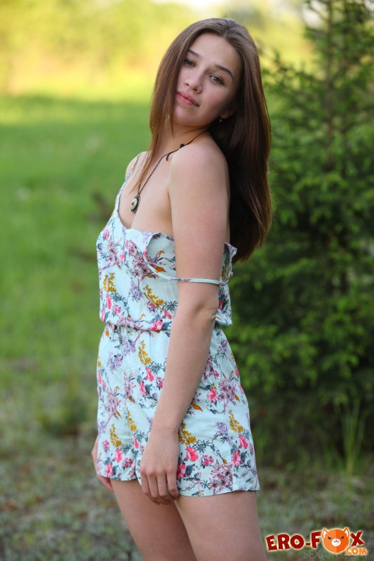 Молоденькая гибка деваха с сексуальным телом, выйдя на природу, сняла платье и устроившись на подстилке начала демонстрировать маленькие сиськи, а раздвигая длинные ноги показывать письку. В процессе позирования, голенькая красотка старалась ласкать бритую киску с волосатым лобком пальчиками, глубоко проникая в её возбуждённое лоно.
