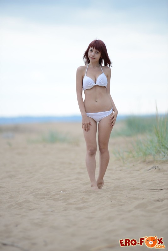 Оказавшись на песчаном пляже, молоденькая девушка начала снимать купальник, оголяя висячую грудь достаточно крупных размеров. Полностью раздевшись, стройная милашка взялась позировать и красоваться перед камерой, прогуливаясь и демонстрируя сексуальное тело со всех ракурсов, не забывая показать нам бритую письку.