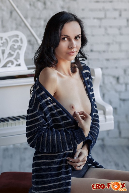 Притягательно красивая брюнетка разделась перед фотографом и голая позирует у белого рояля, демонстрируя своё упруго тело. В соблазнительных позах девушка показывает нам свою упругую грудь, бритую письку с интимной стрижкой на лобке и другие прелести, от которых сложно оторвать взгляд.