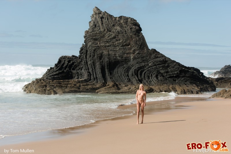 Оказавшись на пляже, привлекательная блондинка с сексуальным телом, полностью разделась и голая гуляет по песку, наслаждаясь океаном и свежим воздухом. Во время прогулки, молодой красотке удалось засветить перед камерой маленькие сиськи с возбудившимися сосками, а так же бритую письку с подтянутой задницей.
