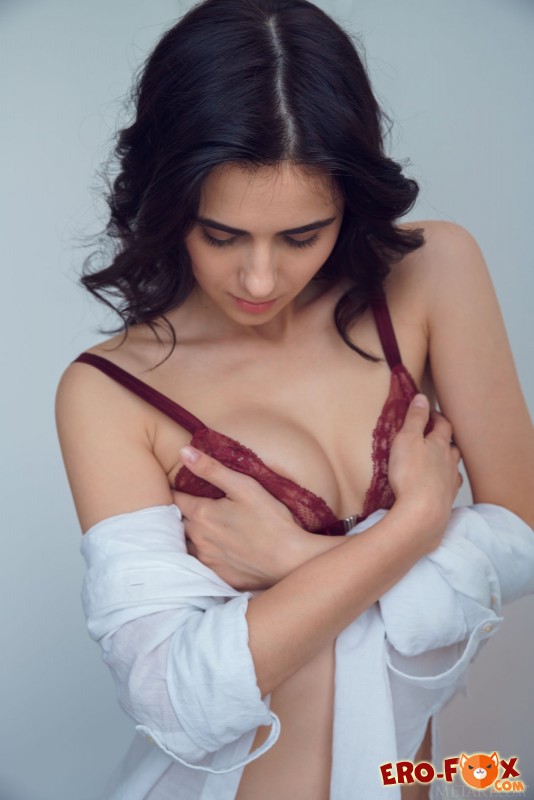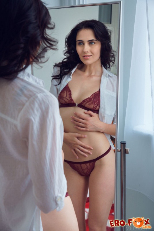 Привлекательная девушка снимает прозрачные трусики, лифчик и белую рубашку, оказываясь совершенно голой перед камерой. Затем брюнетка показывает себя со всех самых соблазнительных сторон, позволяя нам взглянуть на её бритую киску, маленькую грудь и упругую попку.