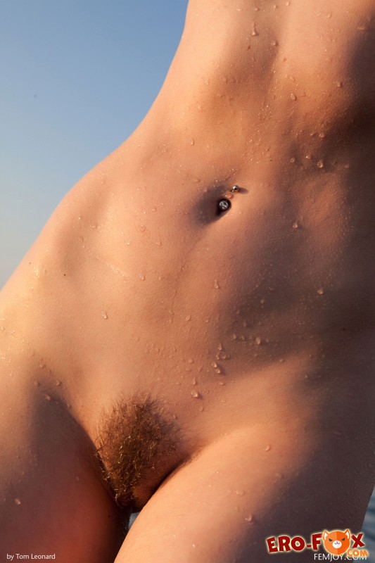 Молодая и обворожительная девушка с красивой фигурой, полностью разделась и голая прыгает в воду, где красавица плескается и пытается обрызгать фотографа. Во время съёмки мокрая милашка игриво улыбается и возбуждаясь от полной наготы, охотно демонстрирует нам маленькие сиськи и письку с волосатым лобком, встаёт раком и открывает великолепный вид на попку.