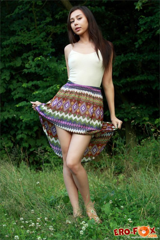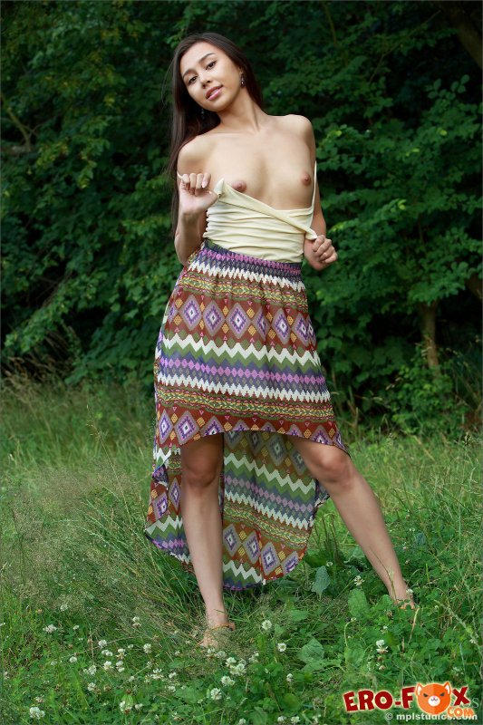 Эротика » Голые девушки » Голая азиатка брюнетка на природе
