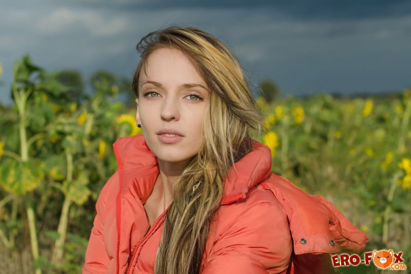 Очаровательная красотка приехала в яркое поле с подсолнухами что бы сняться там в красивой эротической фото сессии. Девушка скинула с себя трусики с лифчиком и голая красуется на фоне жёлтых подсолнухов которые прибавляют красок фотографиям. Впрочем, несмотря на всю живописность этого места, взгляд прикован лишь к девушке с её обольстительными формами.
