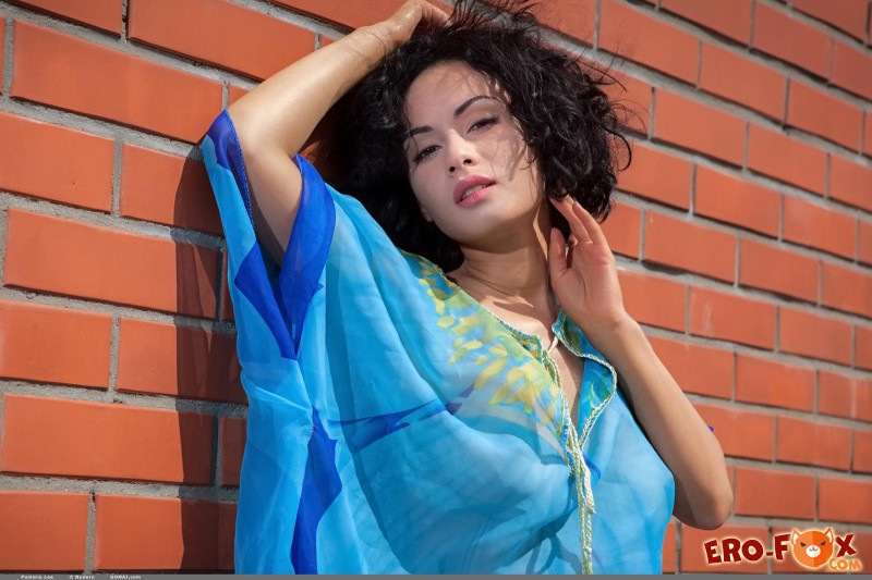 Сексапильная брюнетка с кучерявыми волосами, скинув с себя все лишнее, принялась грациозно показывать большую грудь и волосатую киску, сидя на стульчике рядом с домом. В будущем красавица раздвигает ножки и старается нежно трогать себя руками, страстно посматривая и строя глазки на камеру.