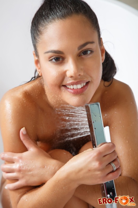 Привлекательная темноволосая девушка с красивой попкой и маленькими сиськами с возбужденными сосками, оказавшись в душе, принялась эротично обливаться водой. Присаживаясь на пол и раздвигая промежность, красотке удавалось показать бритую письку, а после она продолжает чередовать позиции, засвечивая сексуальное мокрое тело со всех сторон.