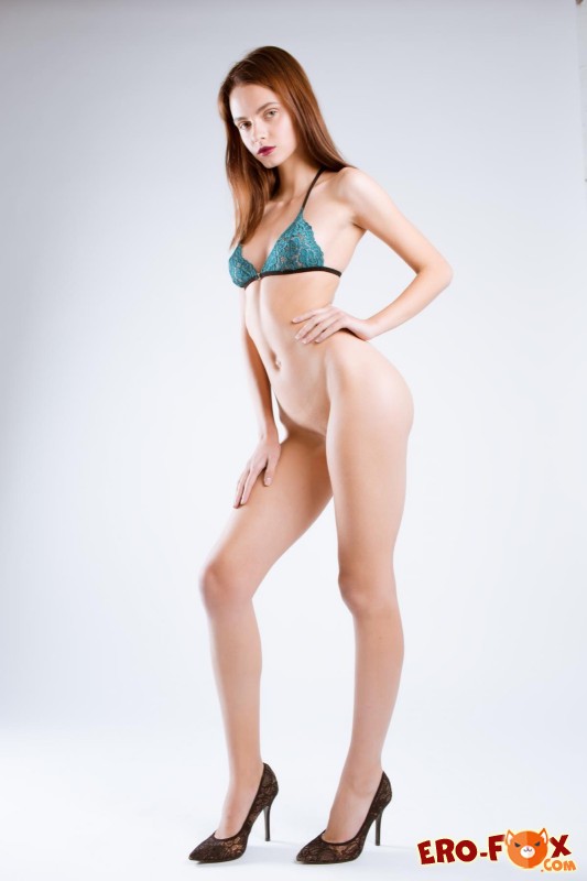 Эротика » Голые девушки » Худенькая модель позирует в лифчике на каблуках