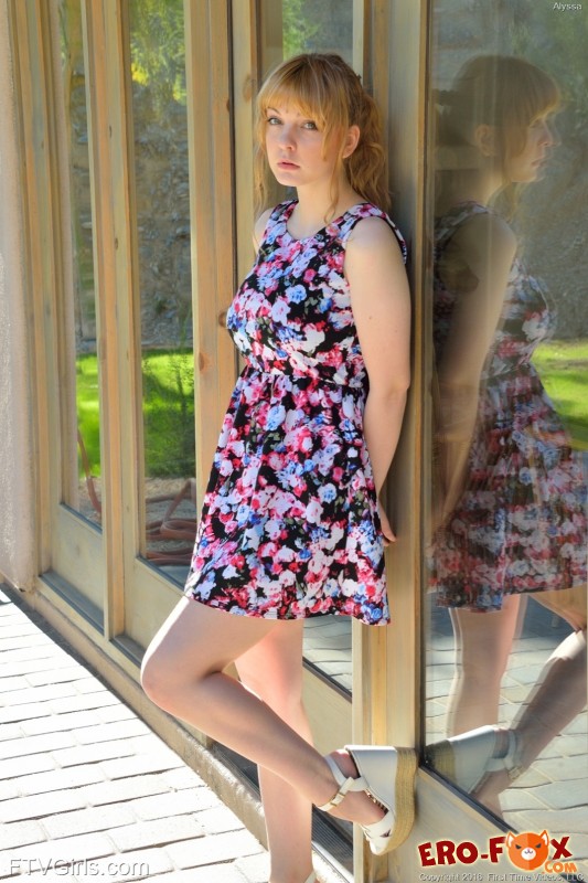 Симпатичная девушка в платье, начинает эротично приподнимать его и показывать кружевное нижнее белье, через которое виднеется сексуальная крупная грудь и бритая писька. В будущем светловолосая красотка раздевается полностью, стараясь более подробно демонстрировать тело, в процессе возбуждающе прижимаясь сиськами к журнальному столику и раздвигая промежность на кровати.