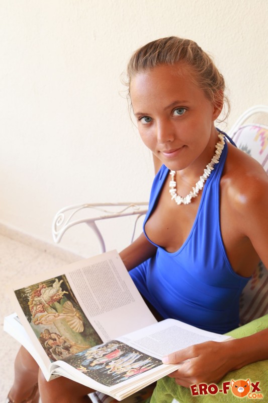 Удобно расположившись на стуле, молодая загорелая модель читает журнал и попивает холодную воду, а через несколько минут встает и показывая длинные ножки начинает медленно раздеваться, обнажая для нас бритую письку. В то время, как по телу девушки разносится волна сильного возбуждения, она не забывает и о своих зрителях, старательно выставляя на показ свои прелести в самых соблазнительных позах...