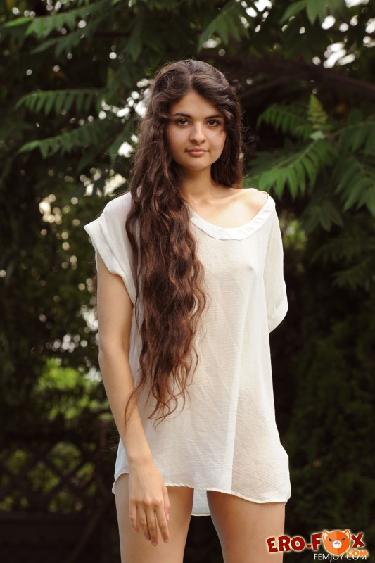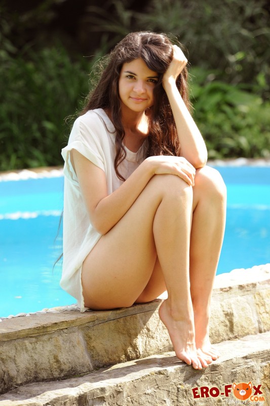 Не снимая футболку, раскрепощенная длинноволосая девица с сексуальным телом забирается в бассейн и начинает эротично купаться, стараясь в процессе демонстрировать себя со всех сторон и медленно оголяясь. В обнаженном виде молоденькой крошке с маленькими сиськами удается показать привлекательную фигуру с самых возбуждающих ракурсов, особенно задерживаясь раком.