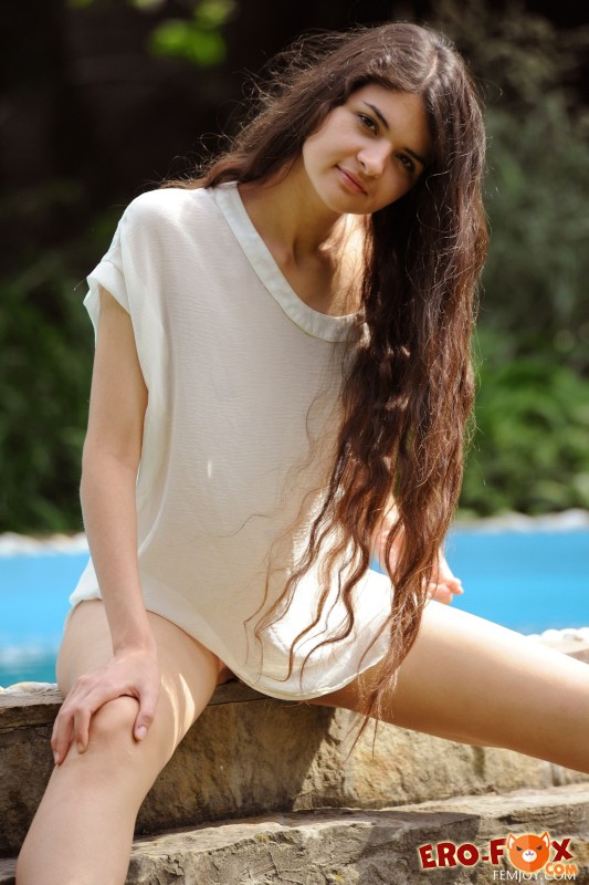 Эротика » Голые девушки » Раскрепощенная длинноволосая девица в бассейне