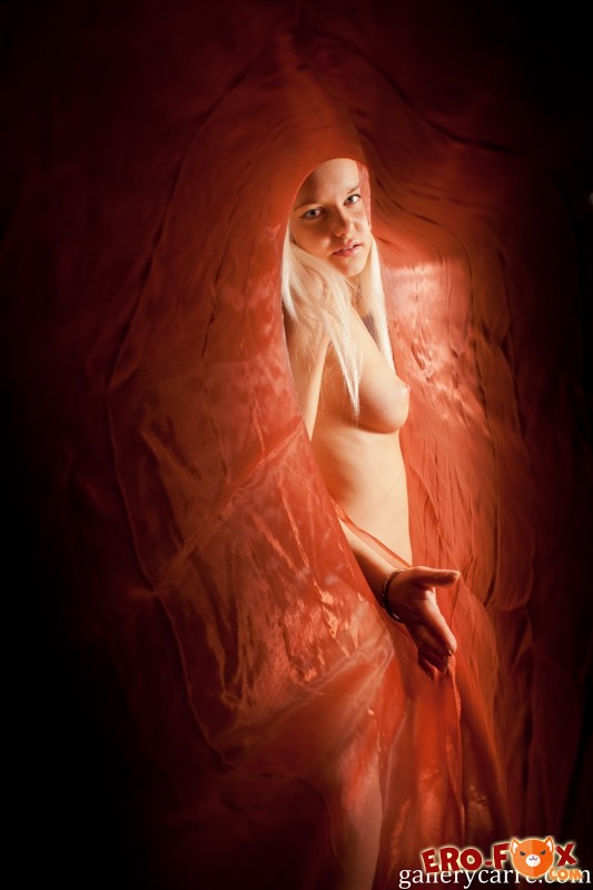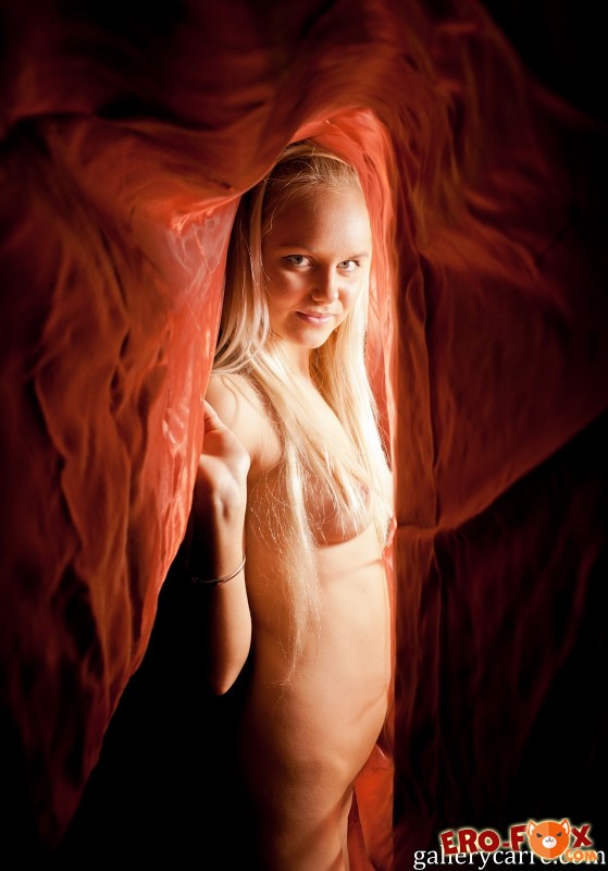 Полностью голая худенькая девушка с соблазнительным телом начинает эротично позировать перед камерой в эротической фотостудии и показывать себя с разнообразных ракурсов, в процессе мило улыбаясь и прячась под тканью. Строя глазки и поднимая руки вверх, очаровательная девушка демонстрирует упругие сиськи с возбужденными сосочками а затем позволяет оценить нам её гладенький лобок с начисто побритой писькой.