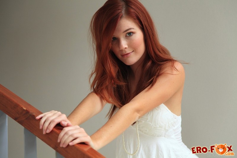 Эротика » Голые девушки » Рыжая голая девка с упругими дойками на лестнице