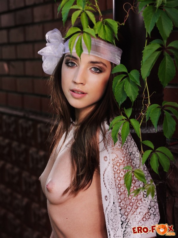 Прикрываясь платком, голая девица без трусов и лифчика в прозрачный белых лосинах грациозно позирует на камеру рядом с загородным домом. В процессе этого, молодая стройняшка все же сняла белые лосины и устрашившись на подстилке во дворе продолжила начатое и подробно демонстрирует сексуальное тело, особенно акцентируя внимание на попке с бритой писькой и волосатым лобком.