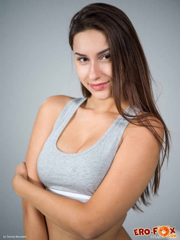 Молодая возбуждающая девушка с волшебной улыбкой сняла на камеру спортивные трусы и лифчик серого цвета, после чего показала голую попу с аппетитными ягодицами. Кроме того красавица позволила взглянуть на её большие упругие сиськи и сочную бритую киску от которой не хочется отрываться...