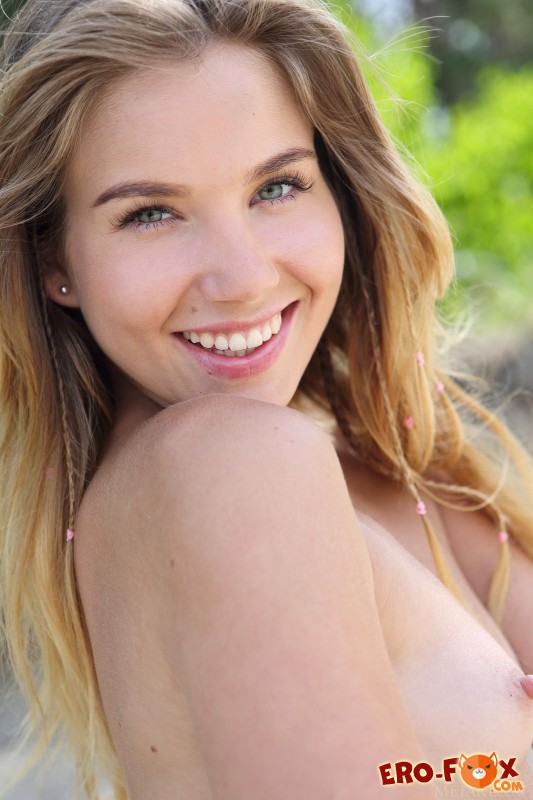Сняв с себя рубашку прикрывающую сексуальное тело, молодая голая девка с плоской грудью и набухшими от возбуждения сосочками начала эротично позировать на пляже. Улыбаясь и валяясь на подстилке, стройняшка поднимала ножки и засвечивала бритую письку, а переворачиваясь на животик оттопыривала попку.