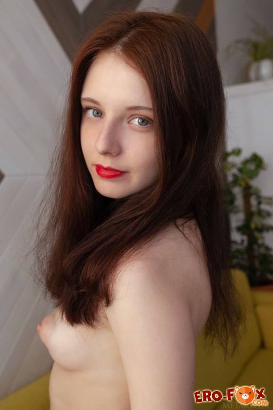 Обаятельная молодая девушка довольно застенчивая особа, но сегодня она накрасила губы яркой помадой красного цвета и голая позирует перед камерой забывая о скромности. В процессе съёмки, трогая маленькие торчащие сиськи руками и прислоняясь к стене, нашей героине удалось показать во всей красе бритую письку с гладким лобком и другие, не менее возбуждающие, части тела.