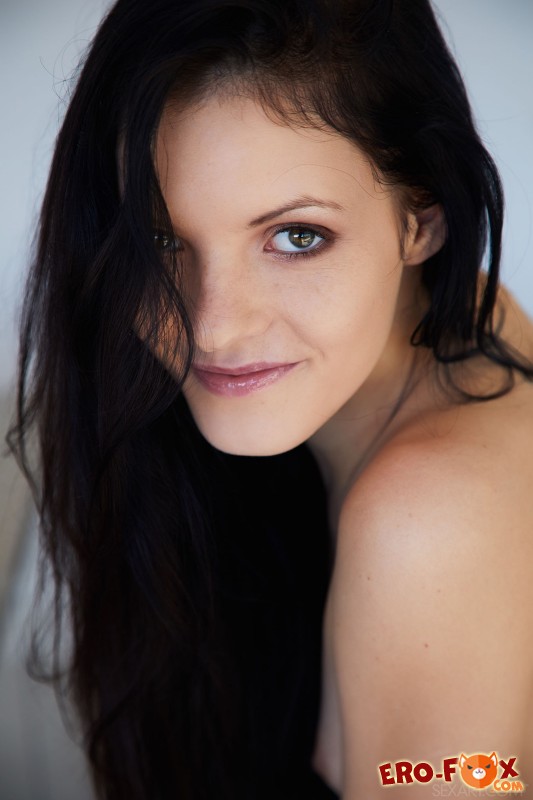 Находясь на кухне, темноволосая, привлекательная девушка в кожаной куртке на голое тело начинает эротично позировать и строя глазки показывать себя со всех сторон, параллельно присаживаясь на стул. Обхватывая руками плоские сиськи, красотка особенно подробно делала акцент на сексуальной письке с волосатым лобком.